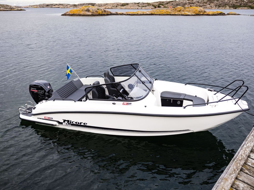 Micore 61br är en bowrider i 6-meters klassen där rutan är traditionellt vänd mot styrplatsen. Badplattformar är standard på båten. Med smarta detaljer och snygg design till rätt pris tror vi oss kunna vinka på många 61br åkare till sommaren.
